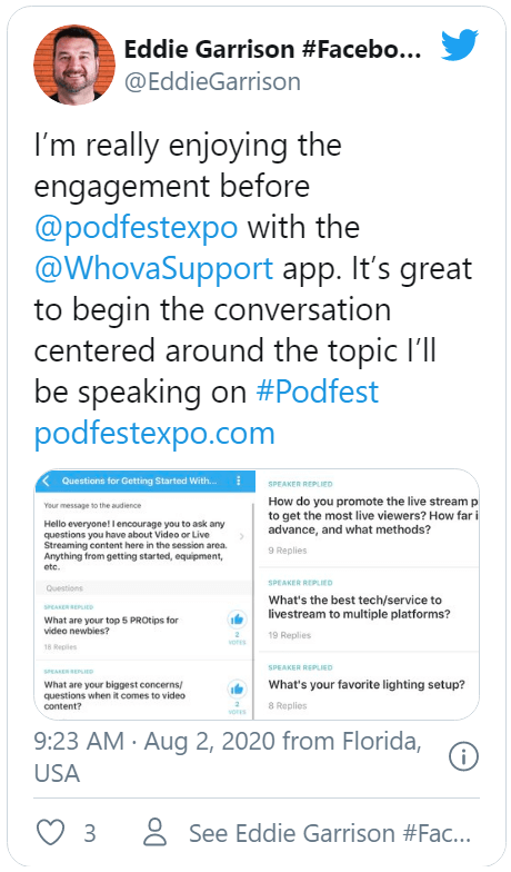 Had a 3 day virtual conference event where Whova was used. It worked out very nicely to interact with presenters and participants during this multi-day event. Not 100% like in-person, but avoid the drawbacks of travel. I would use it again.