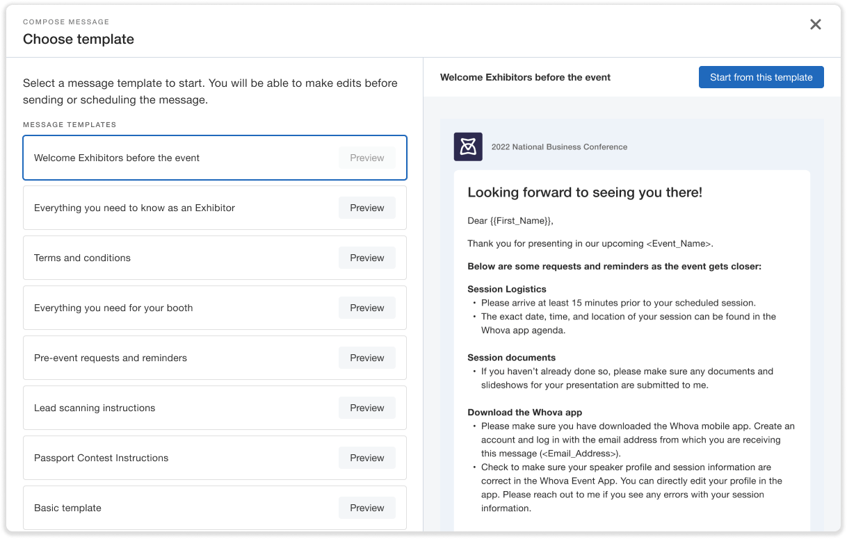 Many of these messages will be referenced at different points in the event timeline, with some revisited multiple times as exhibitors go through different phases of preparation. For example, shipping instructions might be read months in advance, while an exhibitor might not look at pickup details until right before the event.