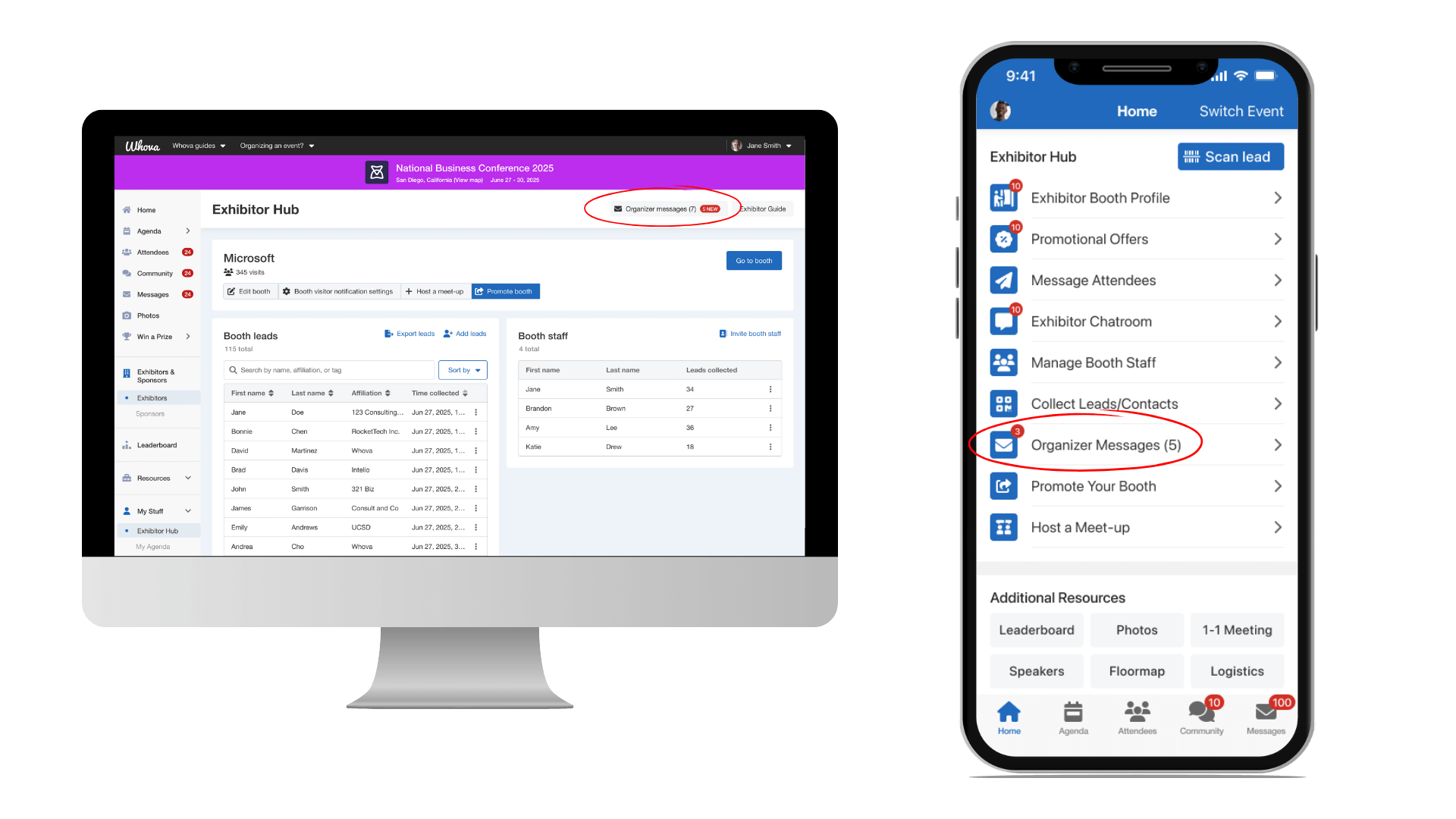 Now that messages are directly available in the Whova app, exhibitors can easily revisit key information whenever they need it—all in one convenient place.