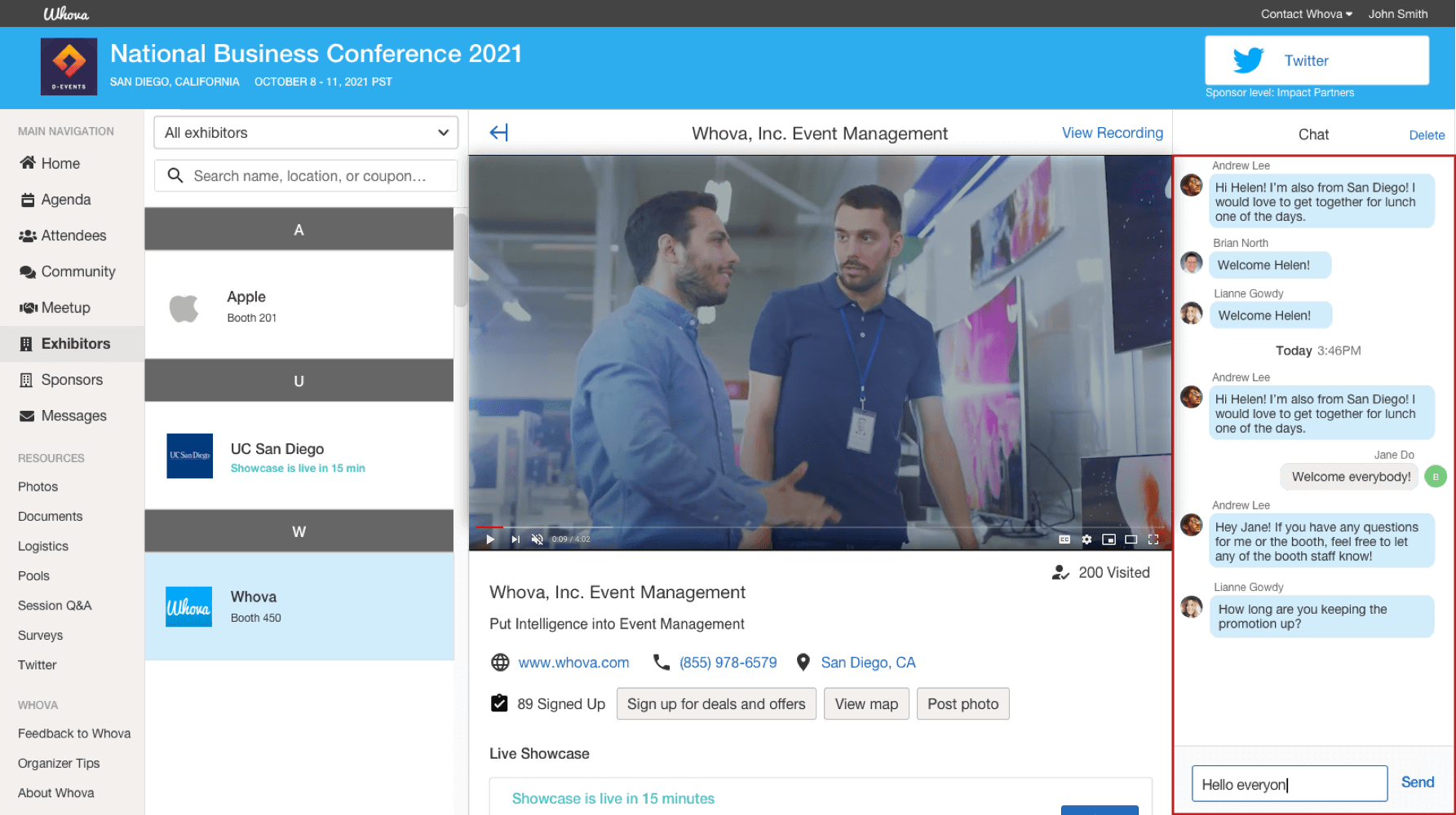 See who could visit your booth by viewing the event attendee list and messaging attendees