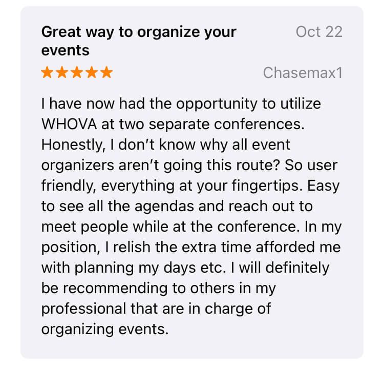 See why so many organizers have chosen Whova for their in-person, virtual, and hybrid events.